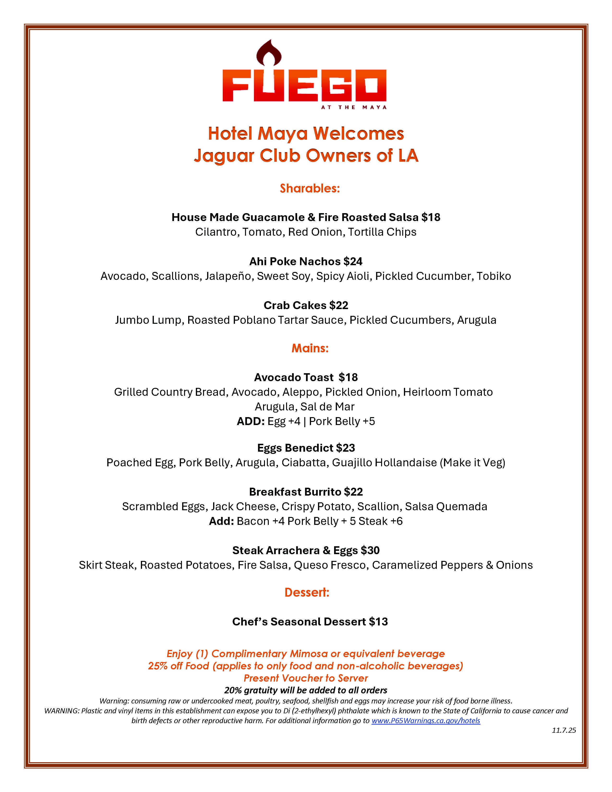 Join your fellow JOCLA members at Brunch being held at our favorite Hotel Maya November 16th. Club pays for your wife, girl friend (1), daughter (1), the gals are our treat for putting up with our JAGAUR obsession! Arrive at 11 for Show & Shine, Brunch at noon.